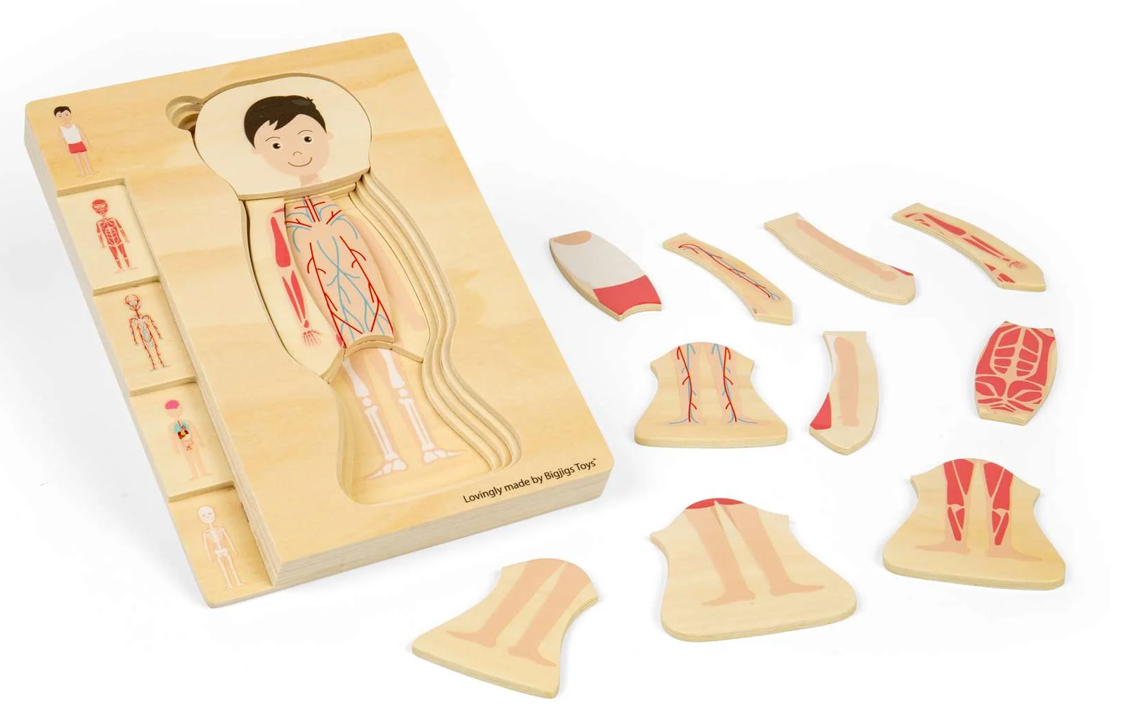 Learn about the human body with our Male Anatomy Puzzle. Each layer teaches kids about the body's intricate makeup, from the skeletal structure to the muscular and organ systems. The puzzle comes with 26 play pieces designed to simplify the complex concepts of the human body and make the study of anatomy accessible and interactive for kids.