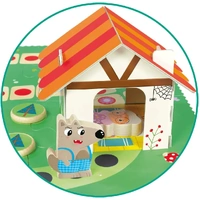 Contains: 10 large wooden pieces, puzzle game board and 3D house