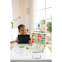 Match 26 letter and 9 number cards, practice writing on the chalkboard, and take them with you to learn anywhere.