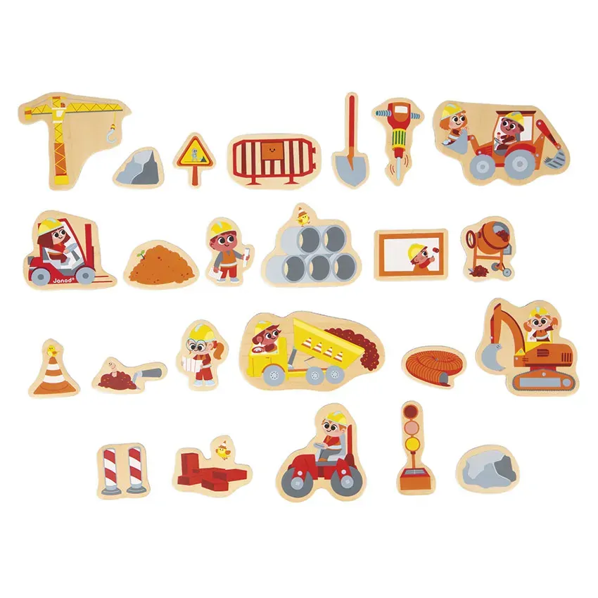 Get ready to dig, build, and create with the Construction Equipment Wooden Magnet Set! Perfect for budding construction site managers, this exciting set empowers children aged 2 and up to take charge of their imaginative building projects. Featuring 24 beautifully crafted wooden magnets, made from FSC certified wood, this set sticks to magnetic boards and other magnetic surfaces, offering endless opportunities for creative play. This magnet set inspires storytelling and creativity, and helps to develop fine motor skills and hand-eye coordination, making it a valuable addition to any child's playtime.