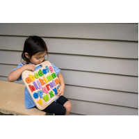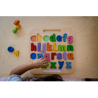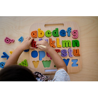 A useful magnetic puzzle for helping children to become familiar with the alphabet, and with the role of letters in the formation of words. A tracing stick is provided to help build the fine motor skills, practice pen holding and the correct way to write each letter. A great preschool puzzle to prepare a little one on the movements of writing and build their muscles ready for writing for extended periods of time. Its use is enhanced if the companion puzzle of uppercase letters (sold separately) is also available to the older child. The letters magnatise to the board making it easy to carry along and store.