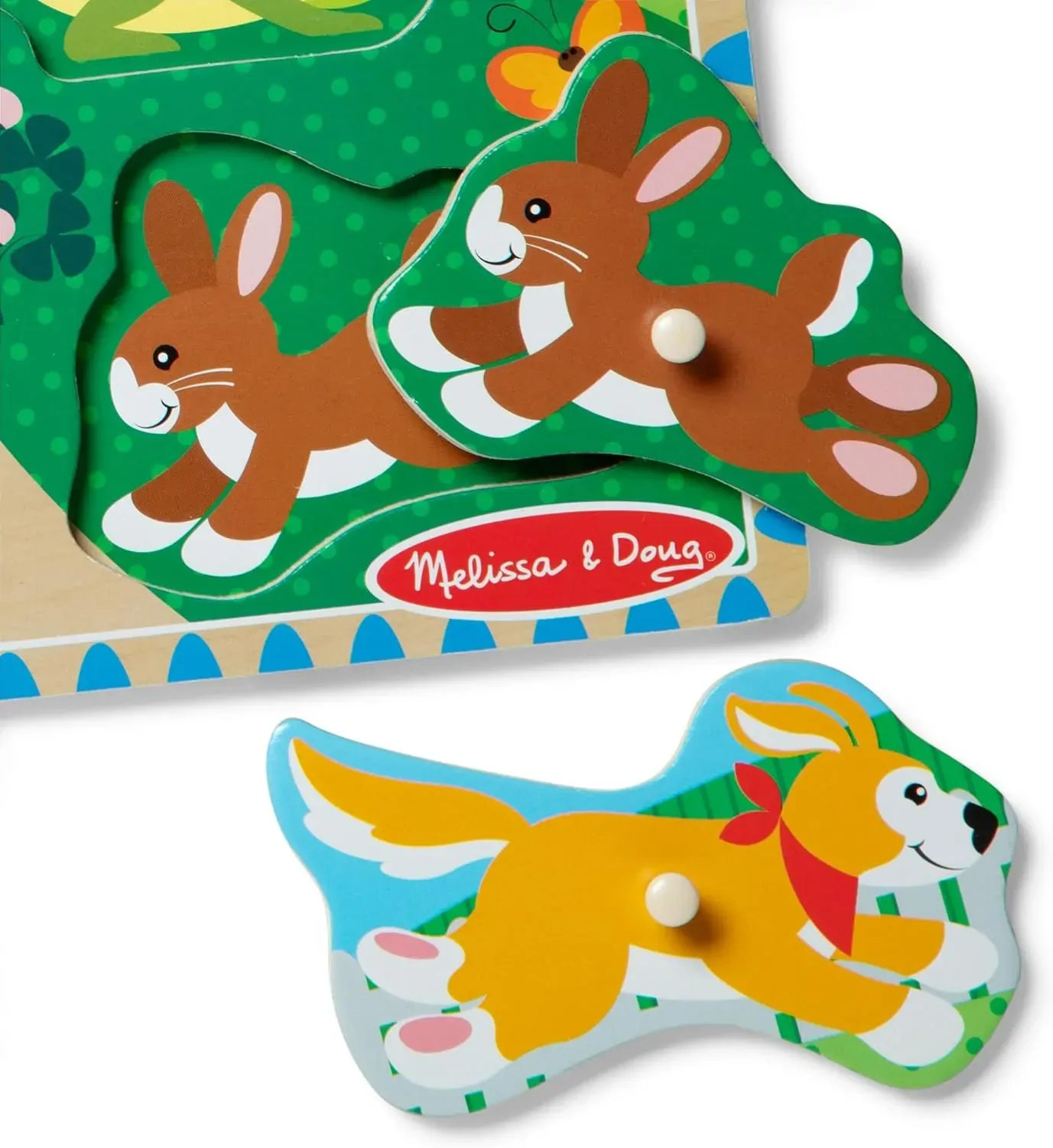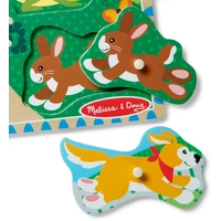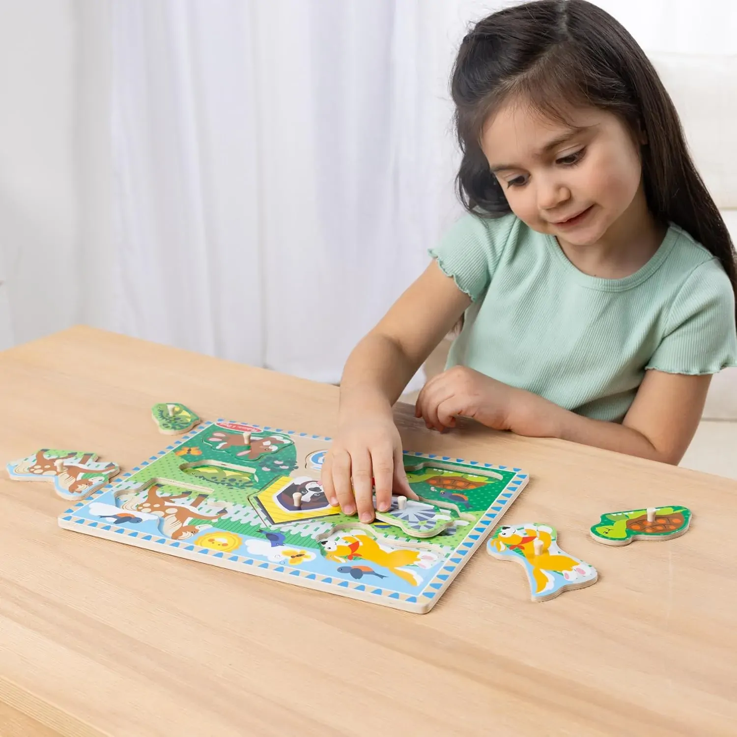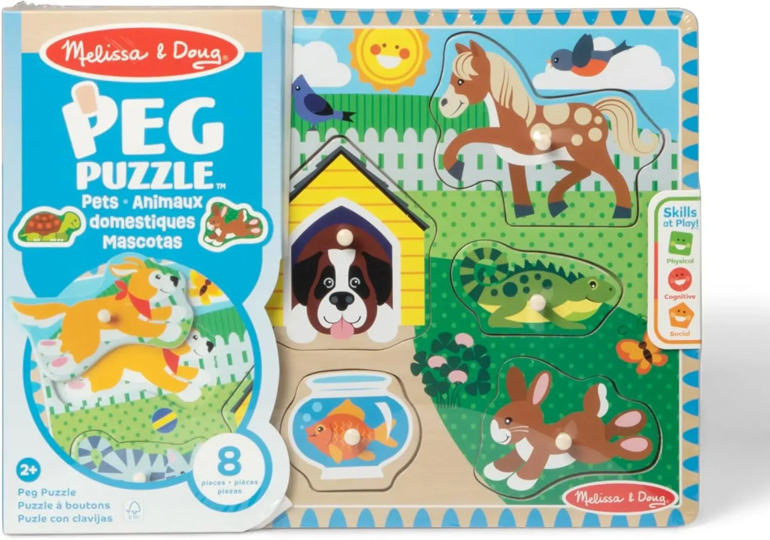 Children will love spending time with these beloved neighborhood pets as they place each wooden puzzle piece over the matching picture on the puzzle board. This sturdy 8-piece puzzle features easy-grasp pegs and wooden construction. Promotes hand-eye coordination, fine motor skills, problem-solving skills, and much more!