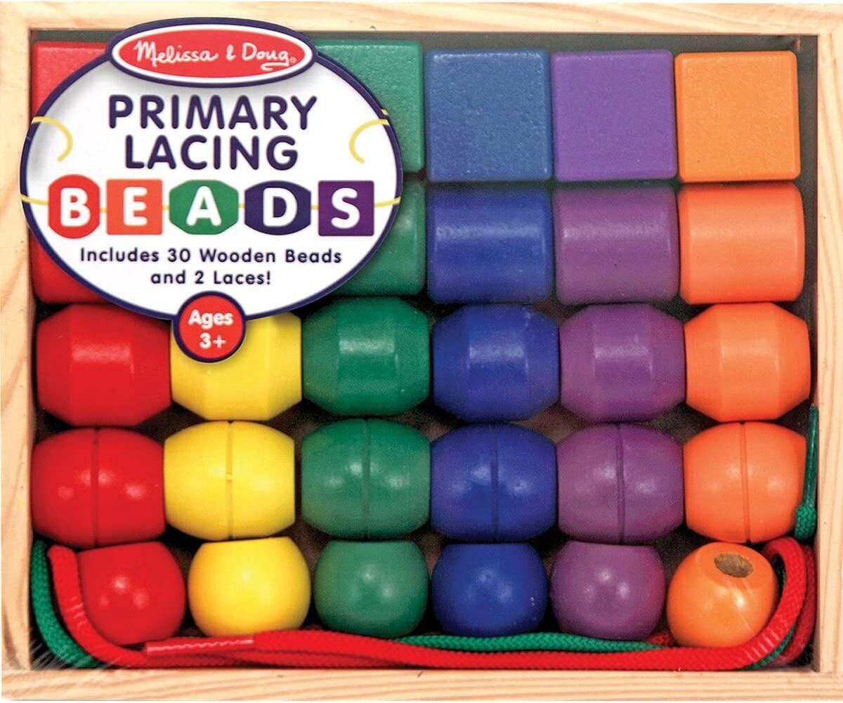 Thirty wooden beads in six vibrant colours and five distinct shapes combine with two extra-long laces for many activities. Stringing the easily grasped beads promotes hand-eye coordination, fine motor, cognitive and visual perception skills.